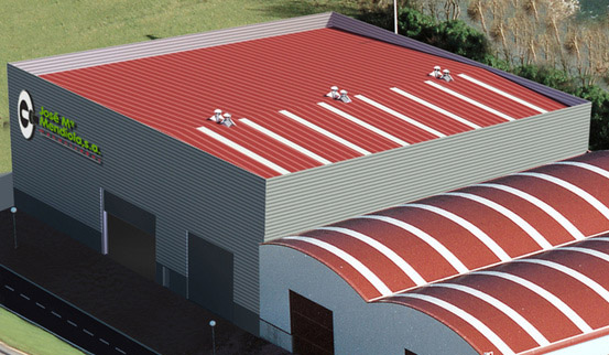 Con una altura a cumbrera de 15,12m, sus cuatro puentes grúa de 63 Tn y el nuevo Centro de Mecanizado instalado en su interior situan a la nueva nave a la vanguardia de grandes mecanizados de presición.
